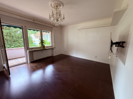 Die Wohnung verfügt über ein helles Wohnzimmer mit Zugang zum überdachten Balkon, der zum Entspannen und Verweilen einlädt. Eine Außen-Markise sorgt hier für Beschattung. Die im Kaufpreis