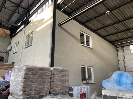 In der gr. Lagerhalle wurde ein neu gebautes Bürogebäude integriert.